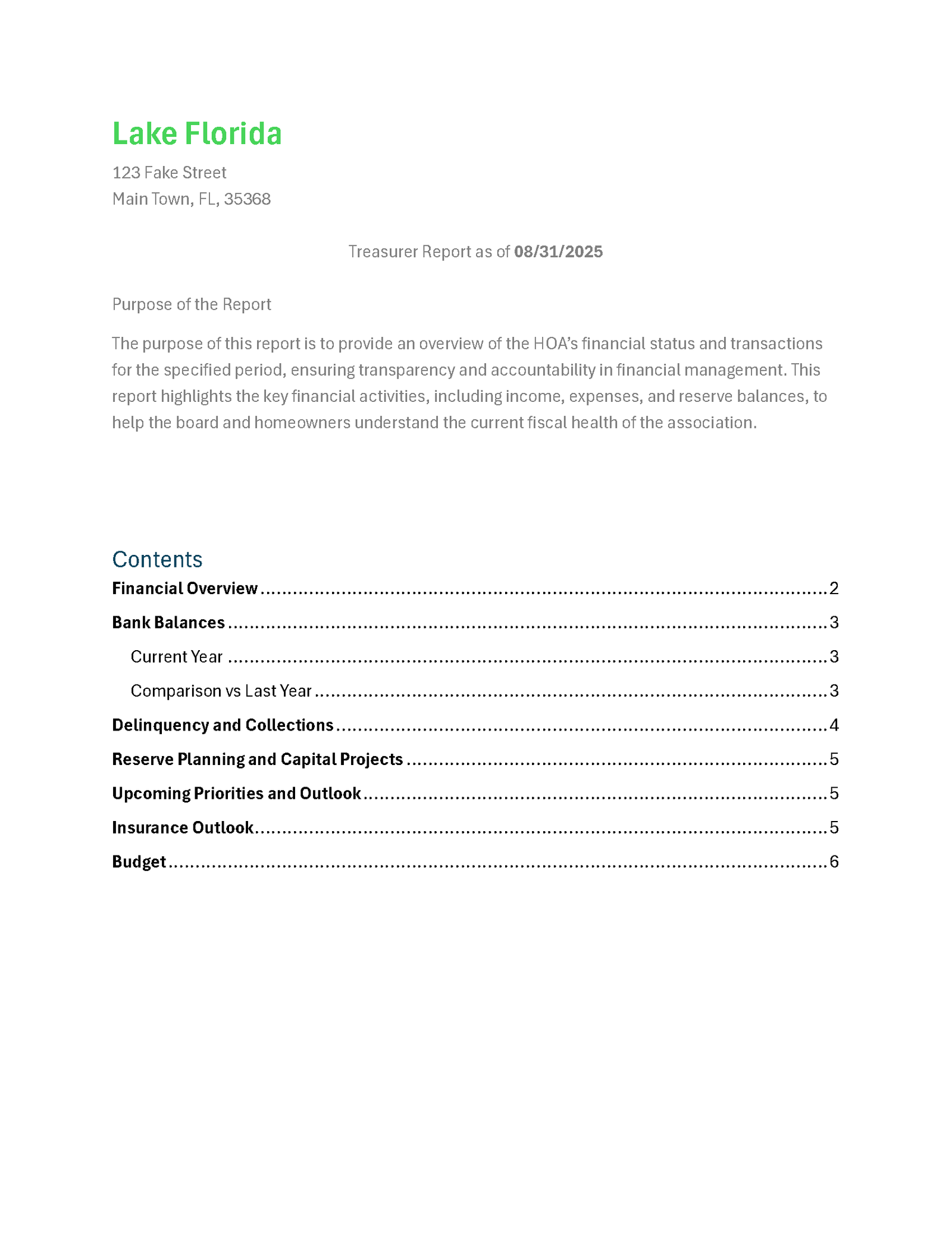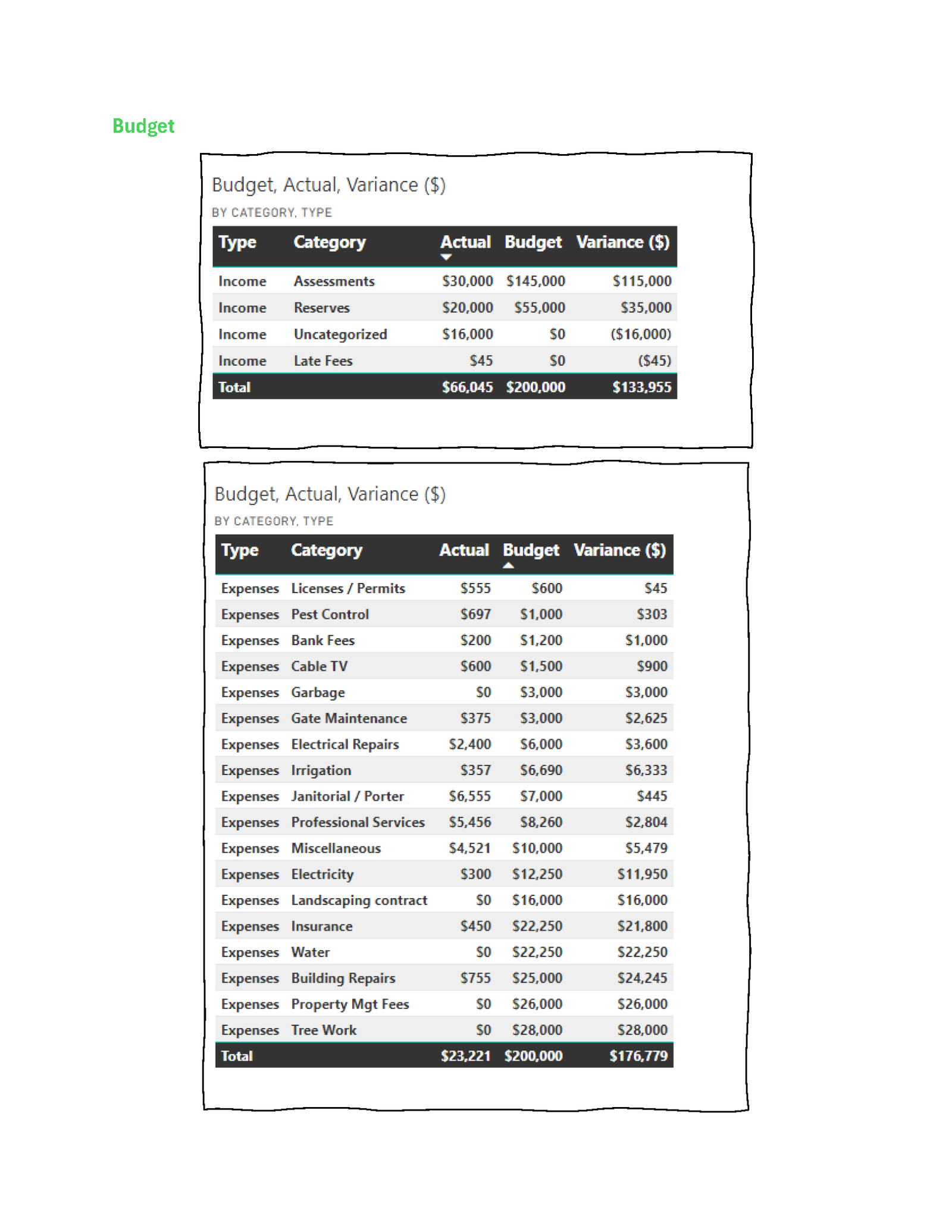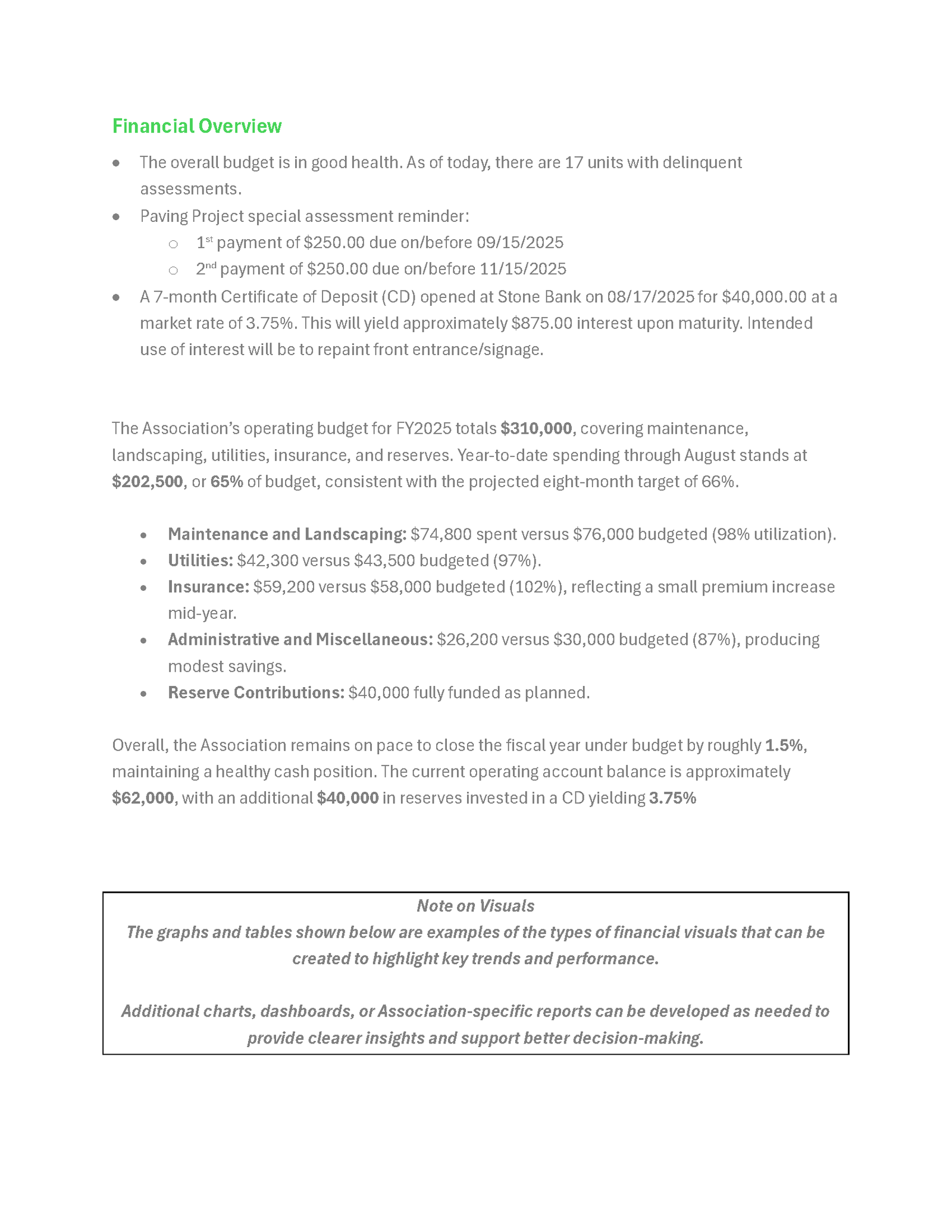 See actual examples of the comprehensive monthly reporting your HOA will receive.